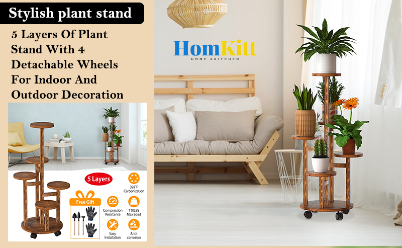 5 Layers Of Plant Stand With 4 Detachable Wheels For Indoor And Outdoor Decoration
